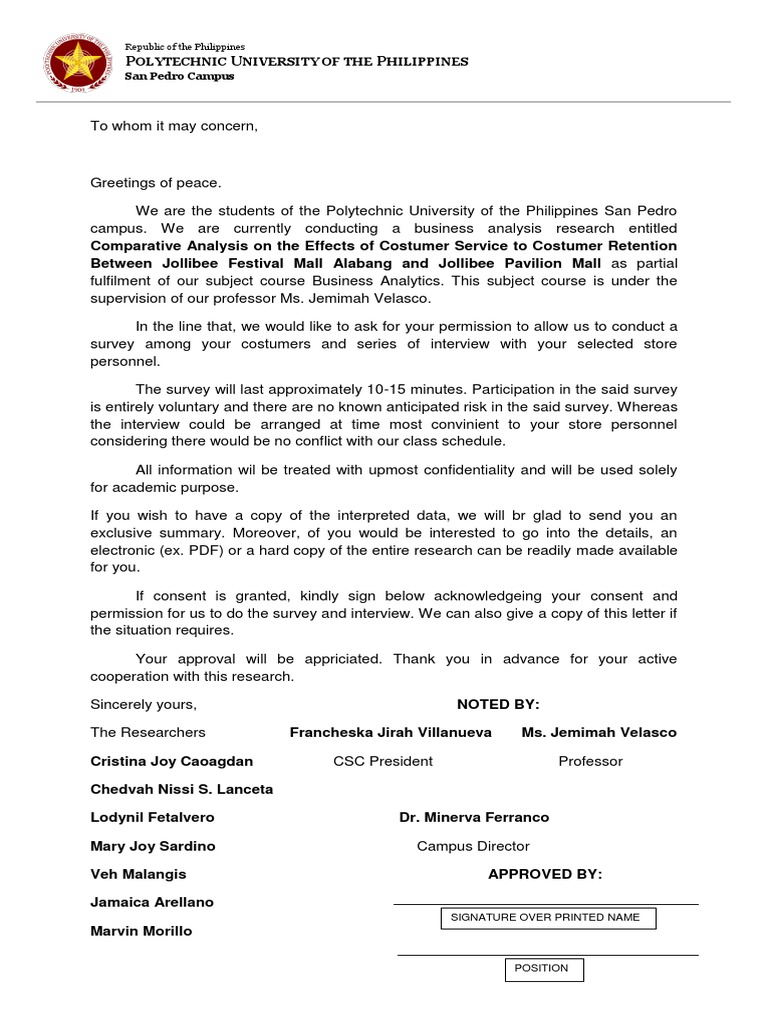 permission for us to do the survey and interview. We can also give a copy of this letter if