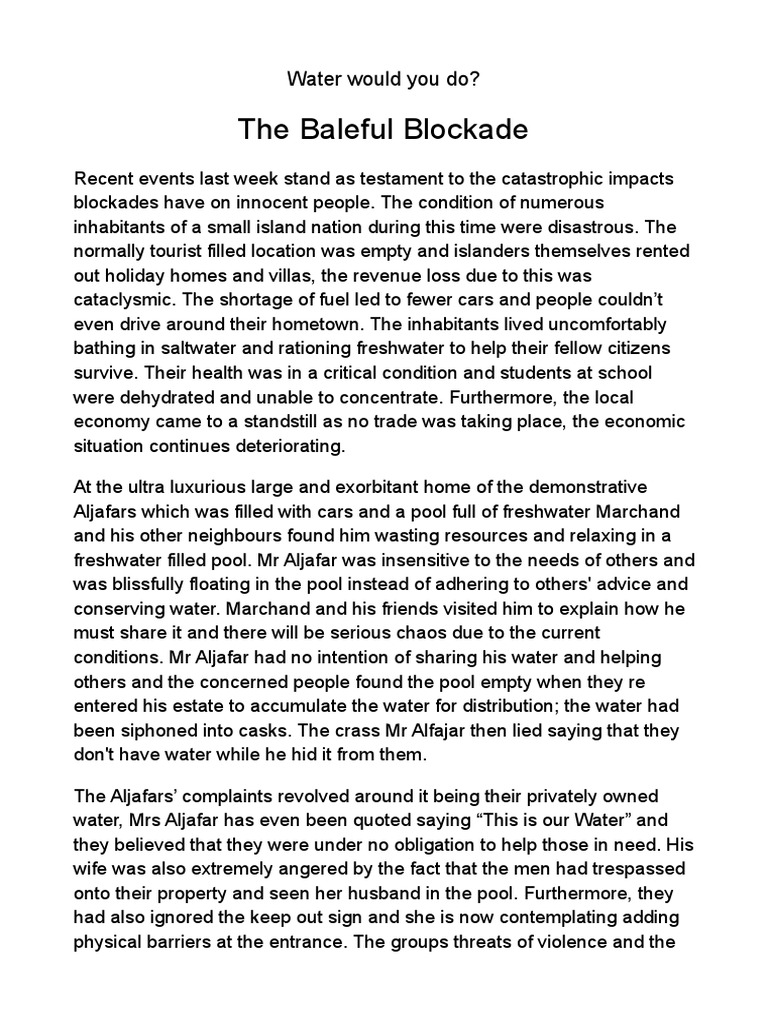 bathing in saltwater and rationing freshwater to help their fellow citizens