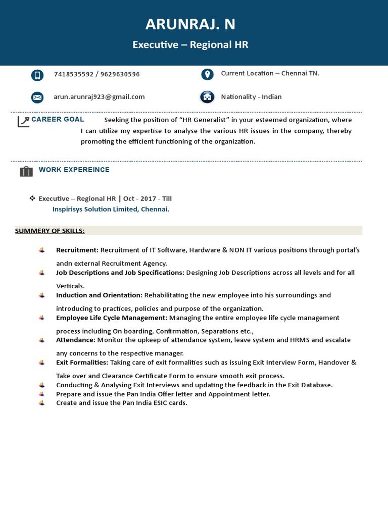 CAREER GOAL Seeking the position of “HR Generalist” in your esteemed organization, where