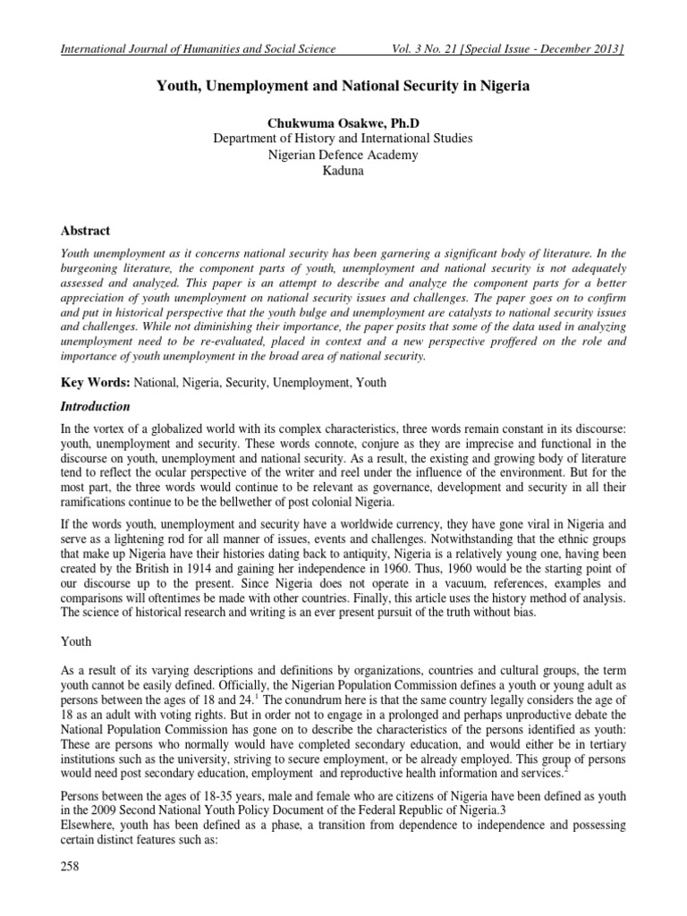 Key Words: National, Nigeria, Security, Unemployment, Youth
