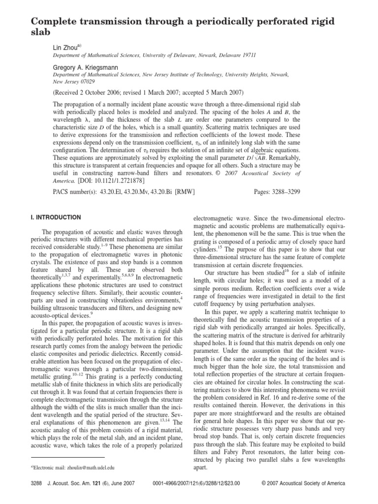 J. Acoust. Soc. Am., Vol. 121, No. 6, June 2007 L. Zhou and G. A. Kriegsmann: Complete transmission through a periodic structure 3289