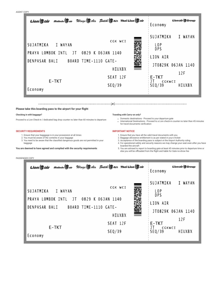 Proceed to a Lion Check-in / dedicated bag drop counter no later than 60 minutes to departure Domestic destinations - Proceed to your departure gate