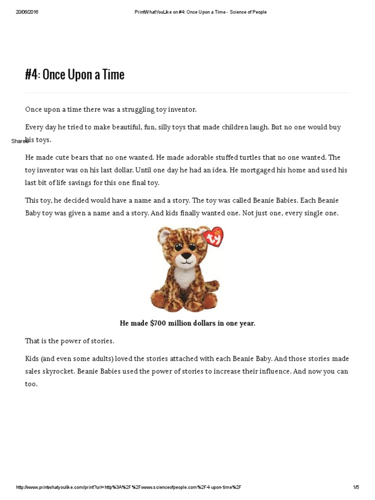 sales skyrocket. Beanie Babies used the power of stories to increase their influence. And now you can