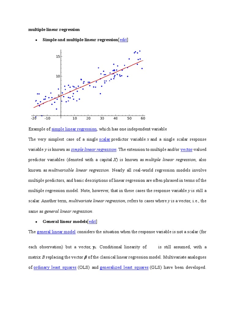 variable y is known as simple linear regression. The extension to multiple and/or vector-valued
