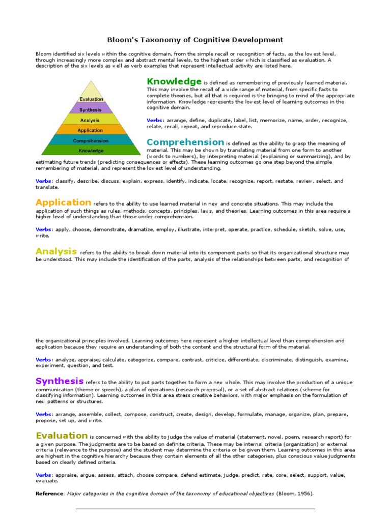 Bloom's Taxonomy of Cognitive Development