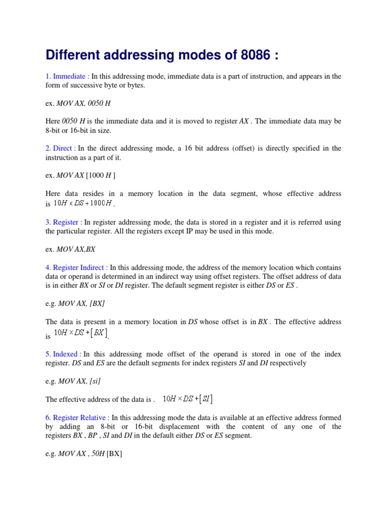 Different addressing modes of 8086 :
