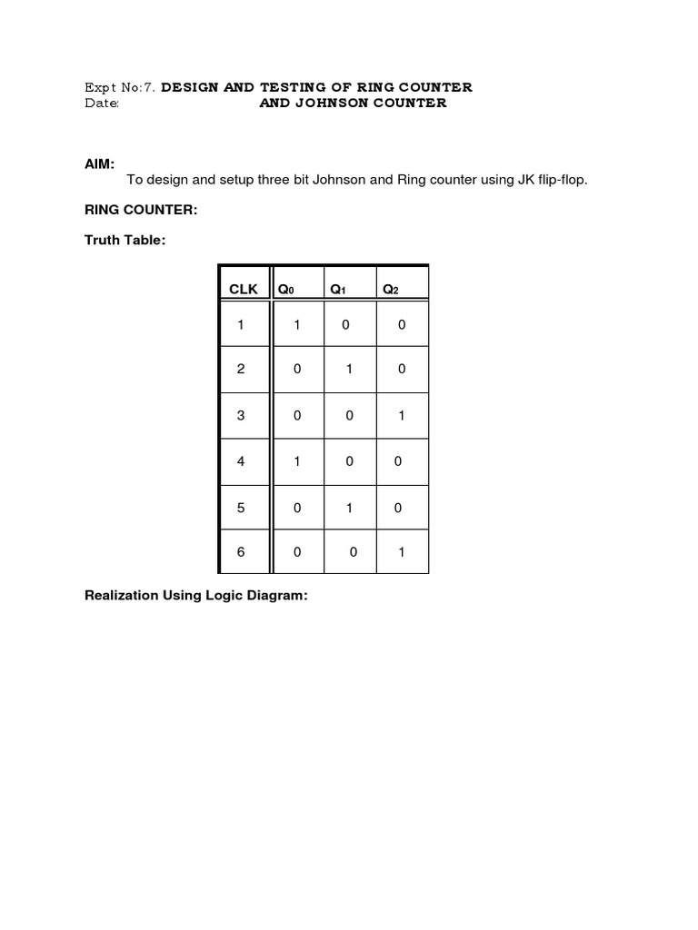 To design and setup three bit Johnson and Ring counter using JK flip-flop.