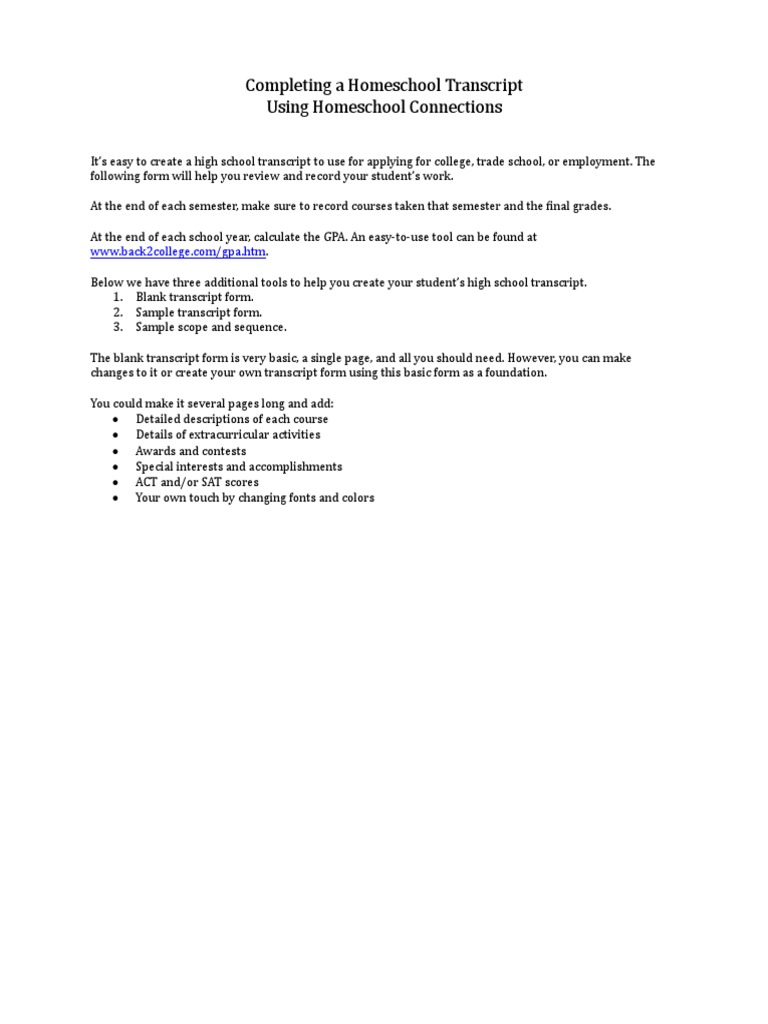 Completing a Homeschool Transcript