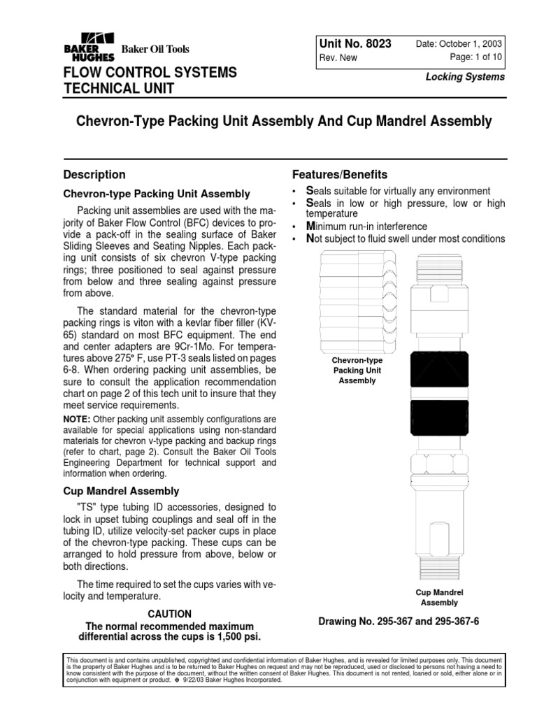 Unit No. 8023 10-1-03 Chevron-Type Packing Unit Assembly And