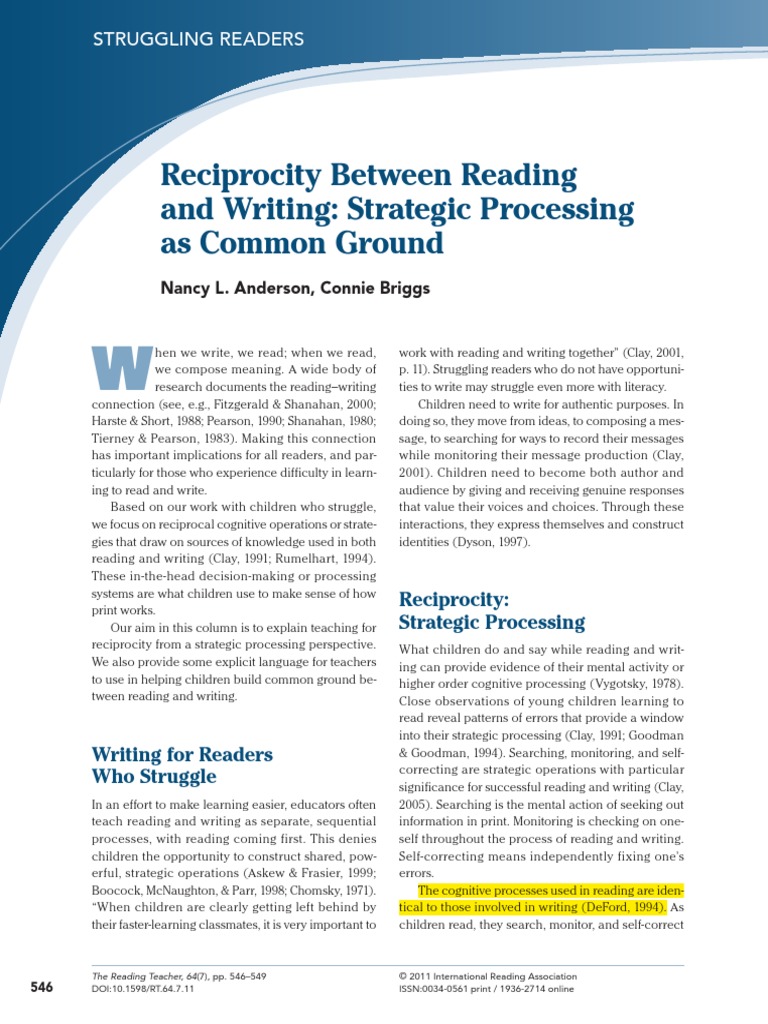 Reciprocity Between Readingand Writing: Strategic Processingas Common Ground 547