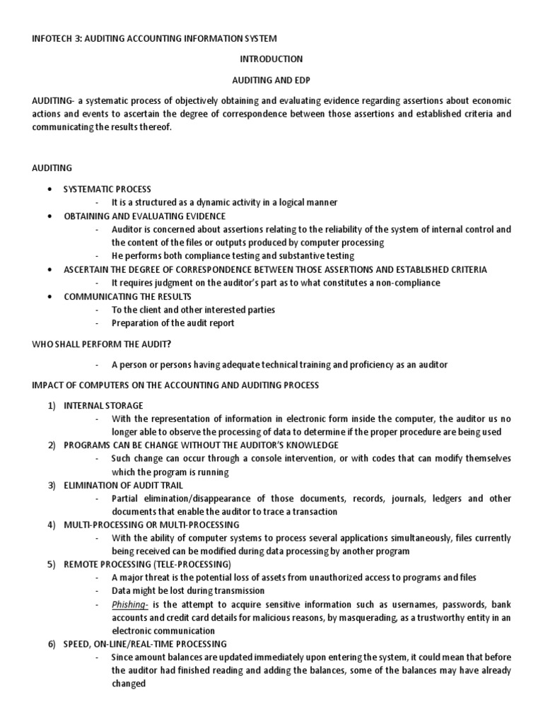 INFOTECH 3: AUDITING ACCOUNTING INFORMATION SYSTEM