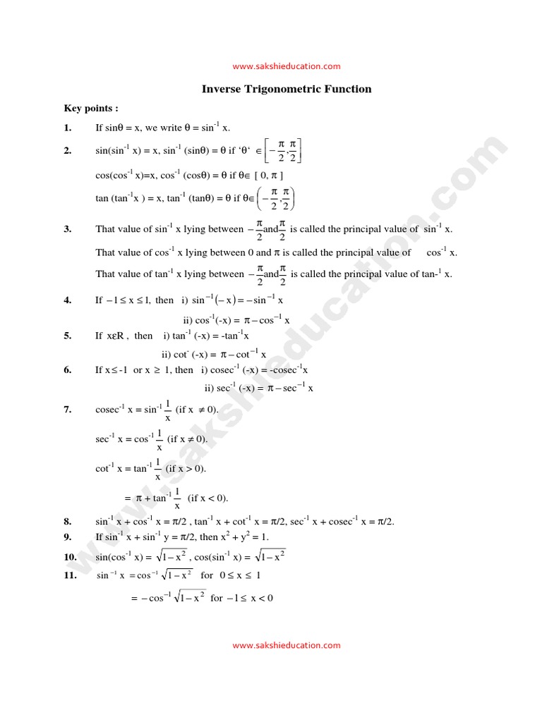 Inverse Trigonometric Function: Key Points: 1. If 2. Sin (Sin