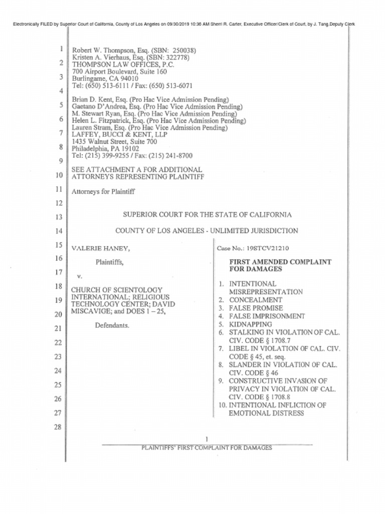 Electronically FILED by Superior Court of California, County of Los Angeles on 09/30/2019 10:36 AM Sherri R. Carter, Executive Officer/Clerk of Court, by J. Tang,Deputy Clerk