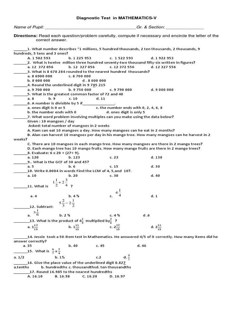 Directions: Read each question/problem carefully, compute if necessary and encircle the letter of the