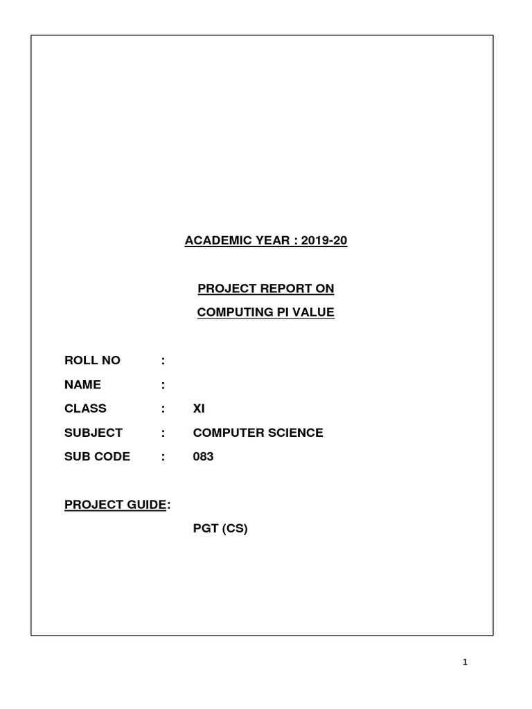 Work entitled COMPUTING PI VALUE in the subject Computer Science (083) laid