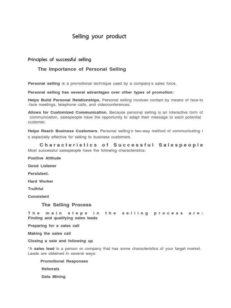 T h e m a i n s t e p s i n t h e s e l l i n g p r o c e s s a r e :