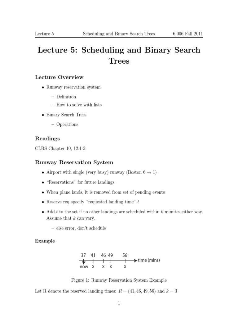 Lecture 5 Scheduling and Binary Search Trees 6.006 Fall 2011