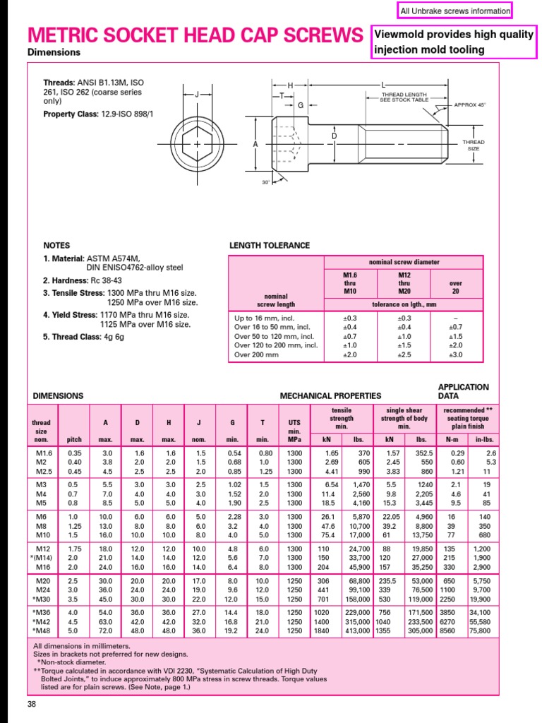• Metric Socket Head Cap Screws: Provides dimensions, mechanical properties, and application data for metric socket head cap screws, following specific technical standards.