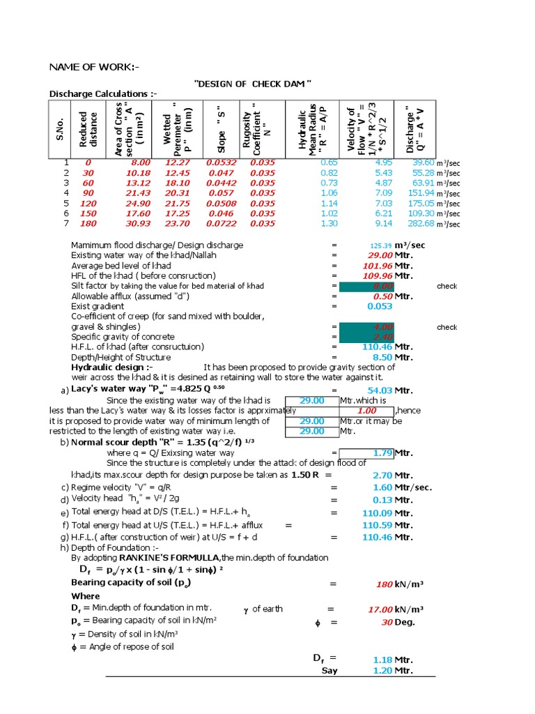 Silt factor by taking the value for bed material of khad = 8.00 check