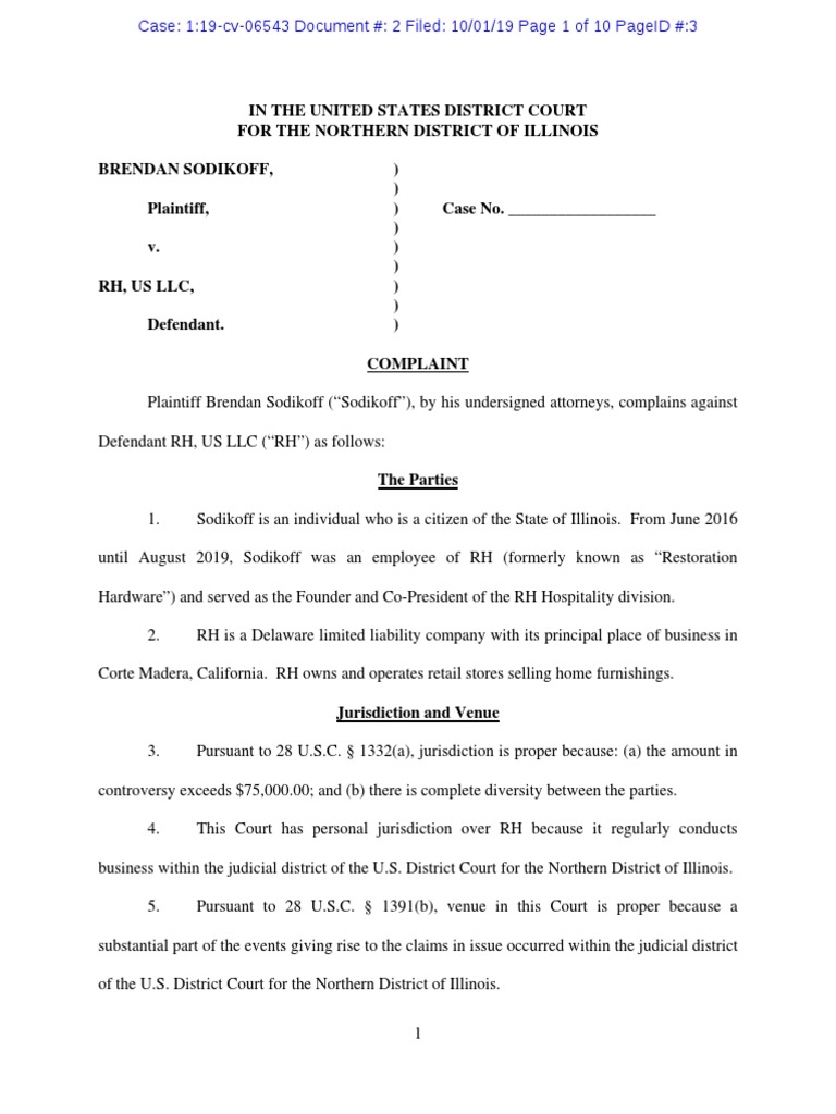 until August 2019, Sodikoff was an employee of RH (formerly known as “Restoration