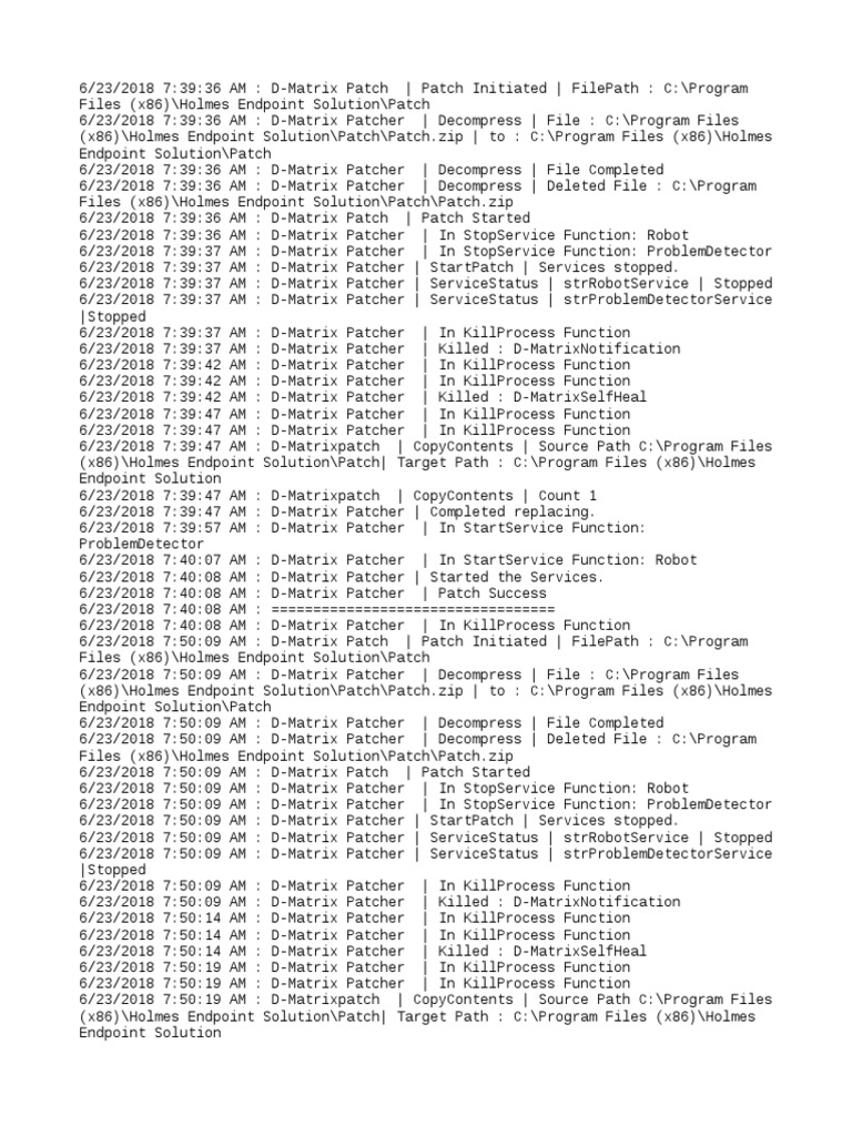 6/23/2018 [Link] AM : D-Matrix Patcher | StartPatch | Services stopped.