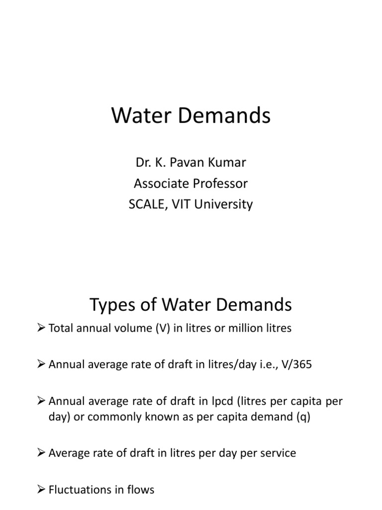 and Sanitation”), the minimum domestic consumption for a town or a city with
