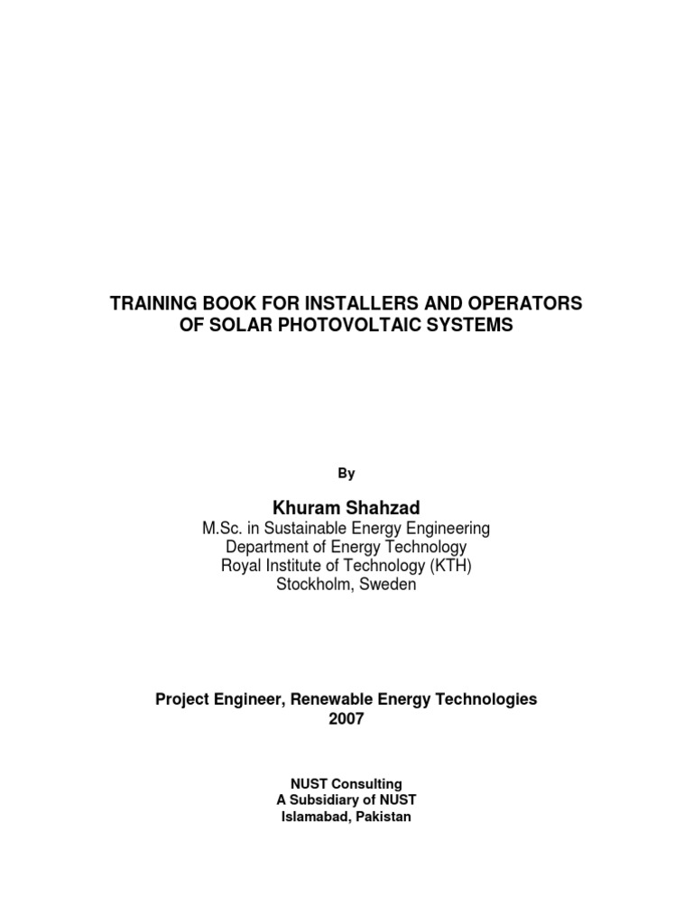 also like to thank all participants of Solar Photovoltaic Systems Training