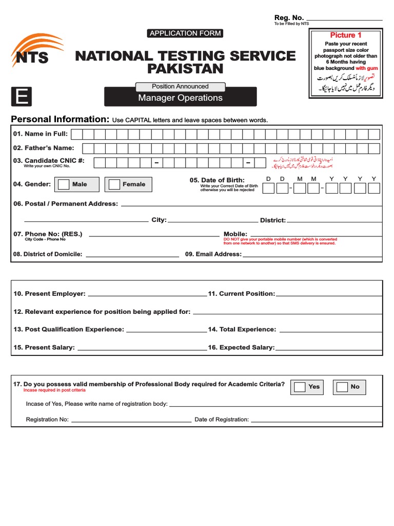 Plot No 96, Street No. 4, Sector H-8/1, Islamabad. hr@nts.org.pk : Email