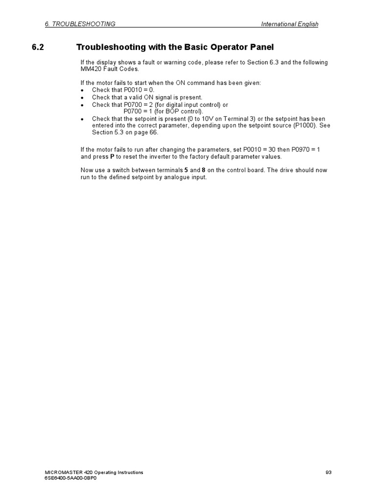 MICROMASTER 420 Operating Instructions 93