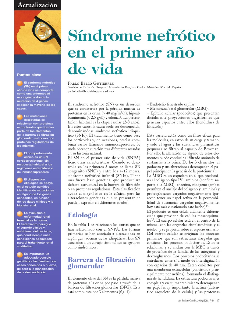 clínico es un SN El SN en el primer año de vida (SNPA) mentos puede conducir al filtrado anómalo de