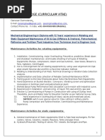 Role : Machinery Preventive Maintenance/Documentation