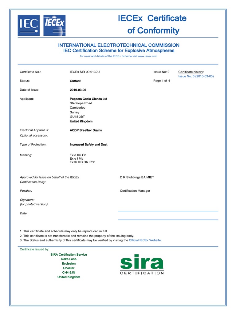 Certificate No: IECEx SIR 09.0132U Issue No: 0