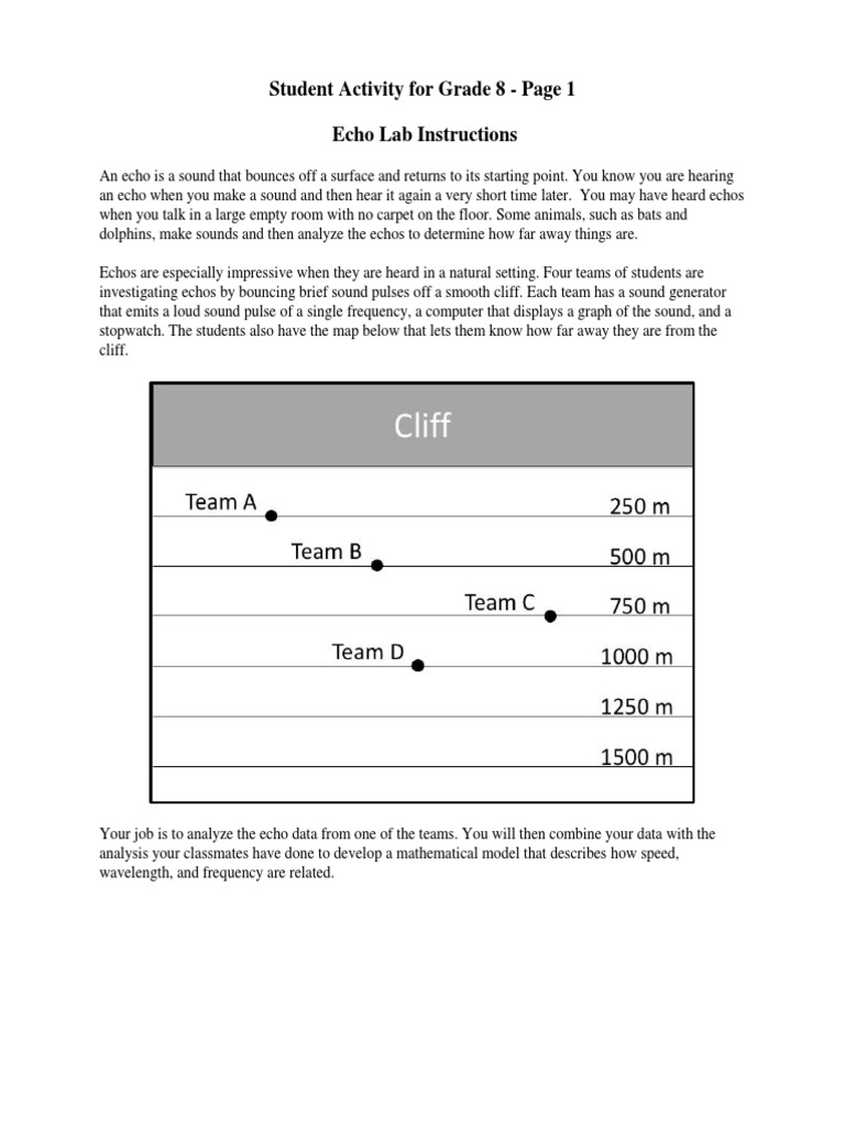 investigating echos by bouncing brief sound pulses off a smooth cliff. Each team has a sound generator