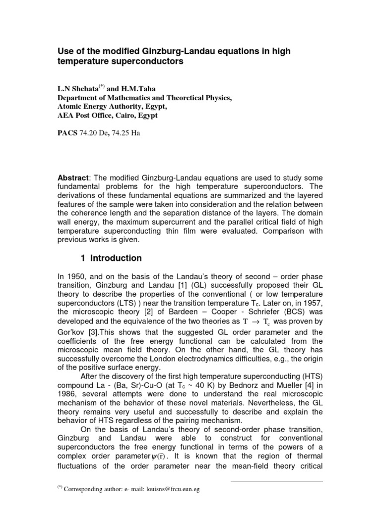 [1] V. L. Ginzburg and L. D. Landau, Zh. Eksp. Teor. Fiz. 20, 1064, 1950.