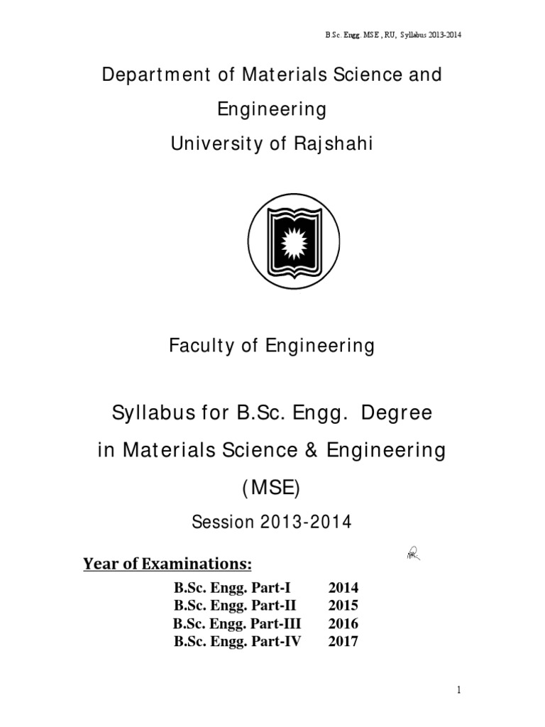 B.Sc. Engg. MSE , RU, Syllabus 2013-2014