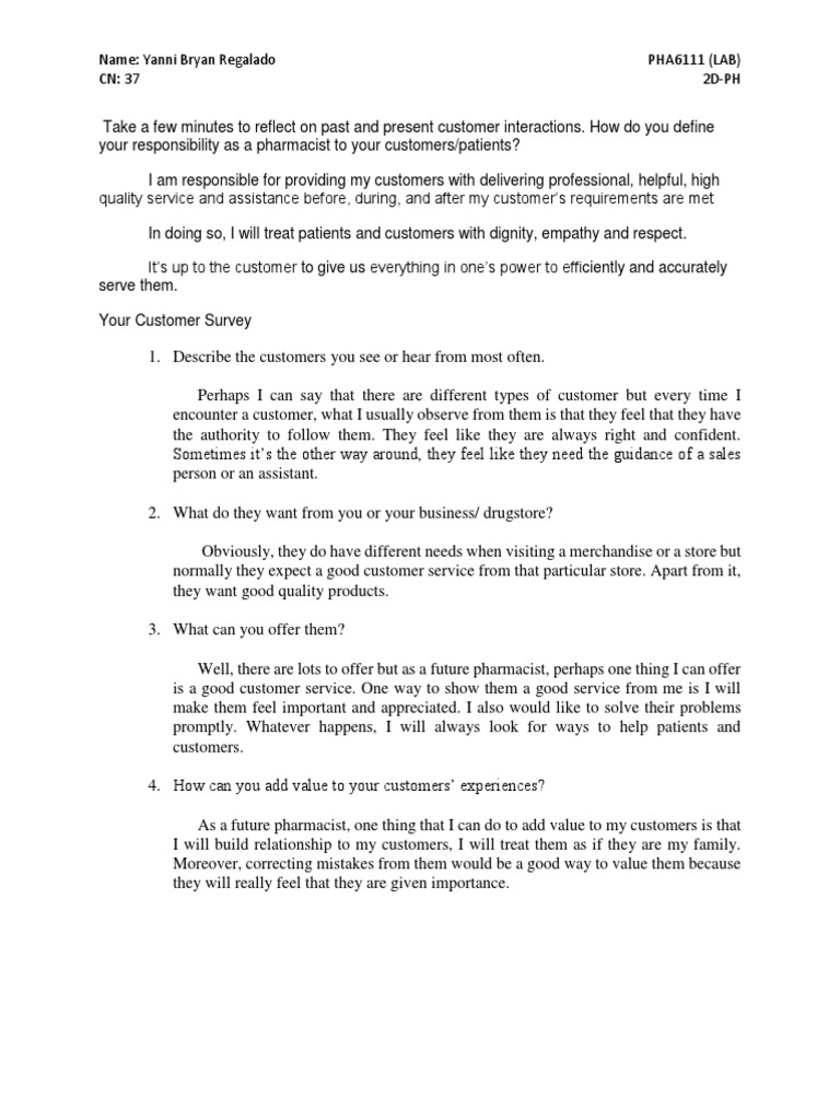 As a future pharmacist, one thing that I can do to add value to my customers is that