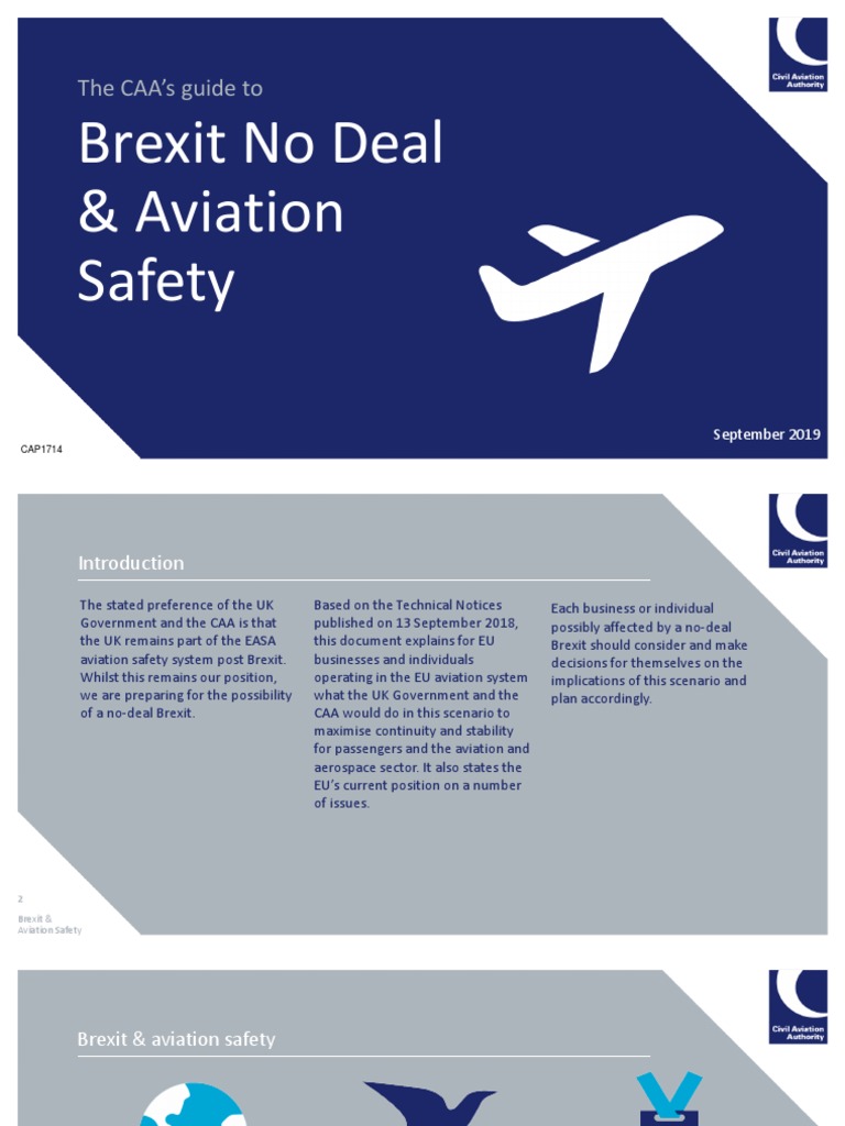 Government and the CAA is that published on 13 September 2018, possibly affected by a no-deal
