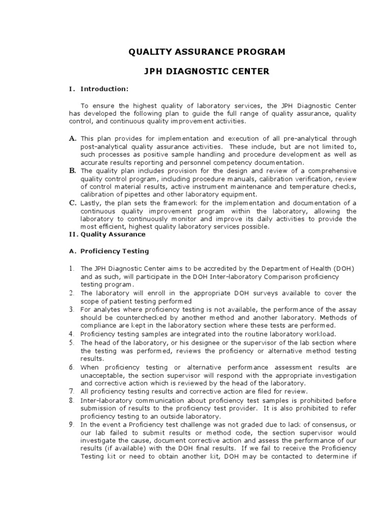 To ensure the highest quality of laboratory services, the JPH Diagnostic Center