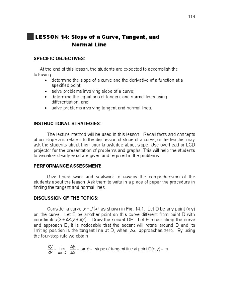 Consider a curve y f x as shown in Fig. 14.1. Let D be any point (x,y)