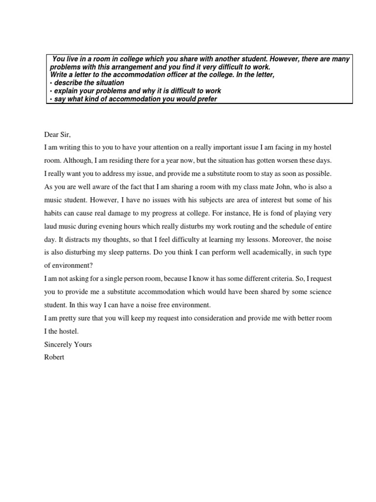 Write a letter to the accommodation officer at the college. In the letter,
