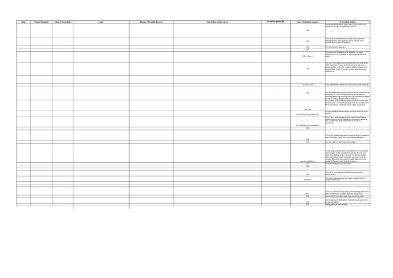 Date Project Number Client / Consultant Issue Reason / Possible Reason Corrective action taken Action Required By.
