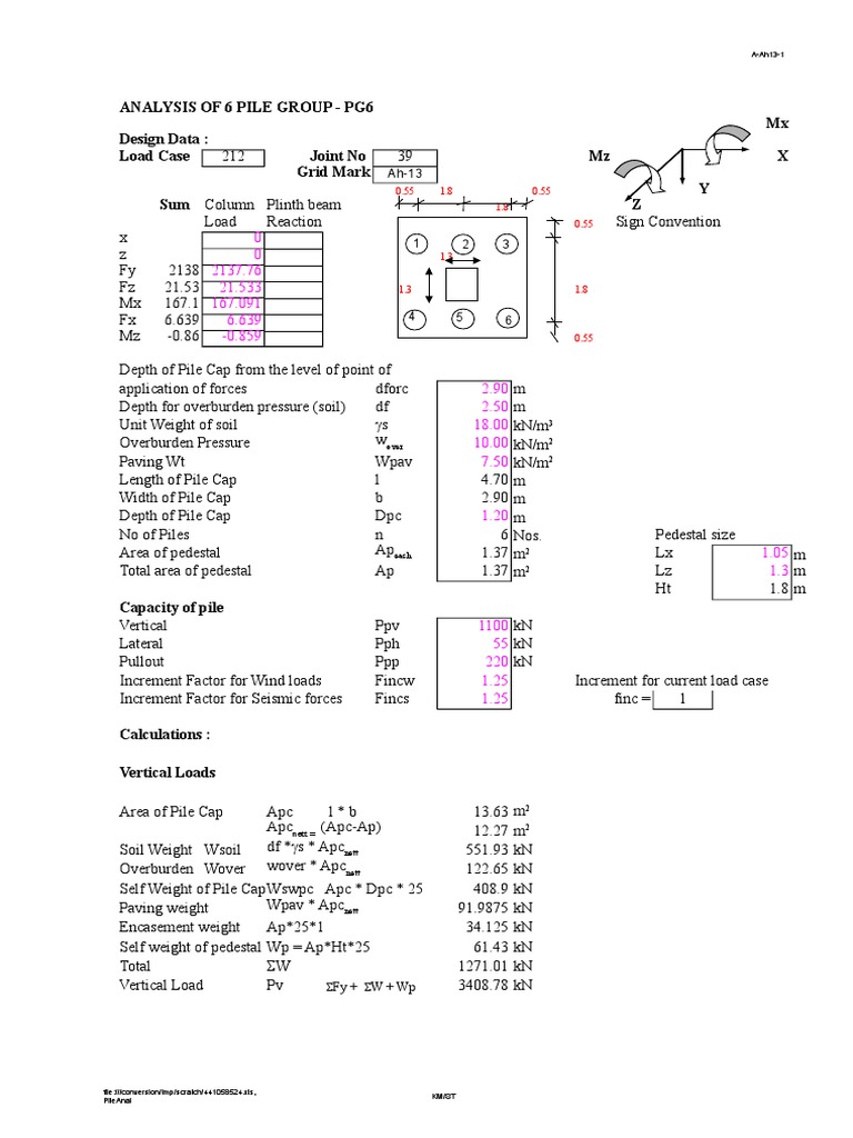 Min. factored pile reaction in piles P3 P6 = 1295.16 kN (As per cl34.2.4.1 IS456:2000)