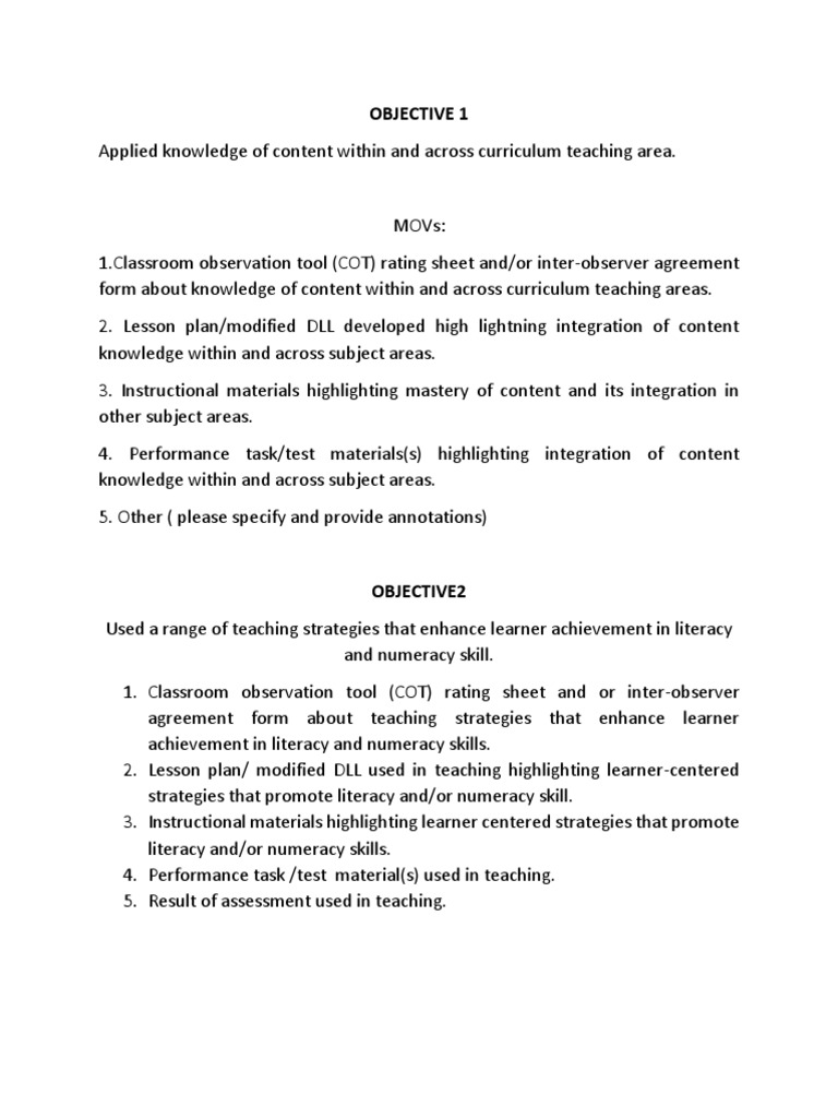 4. Lesson plans/ modified DLLs showing index of mastery