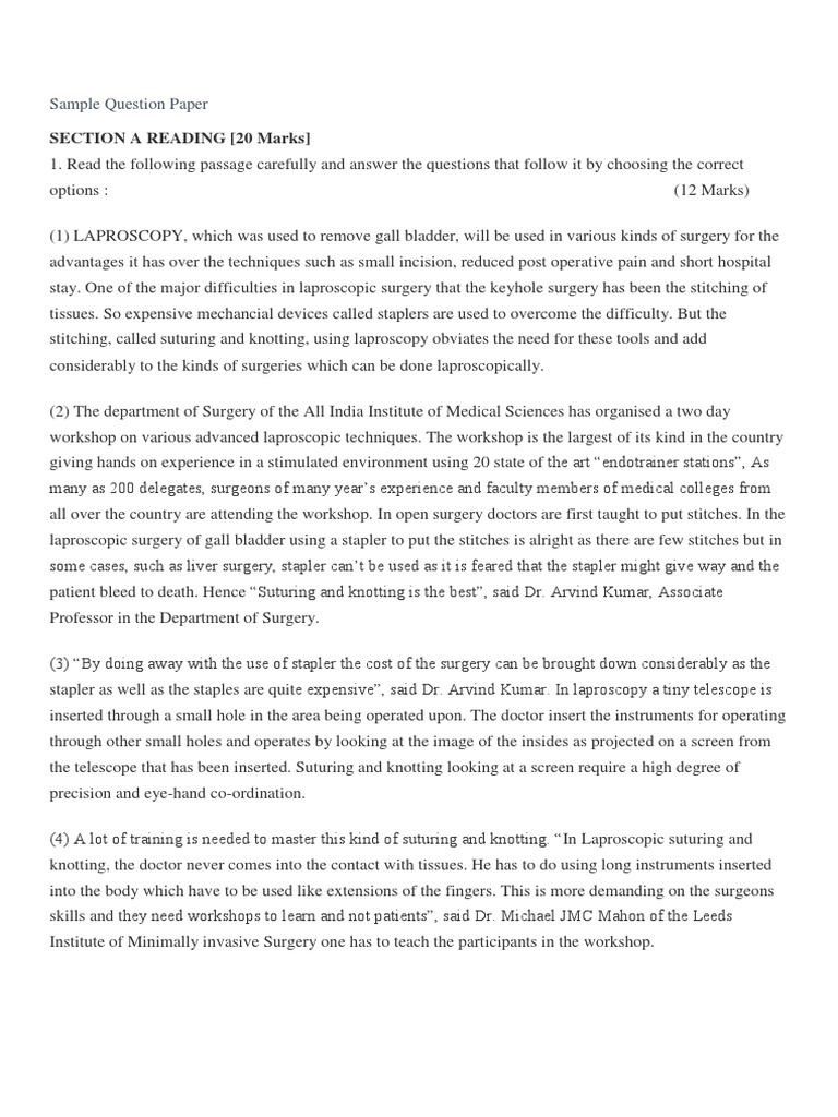 1. Read the following passage carefully and answer the questions that follow it by choosing the correct