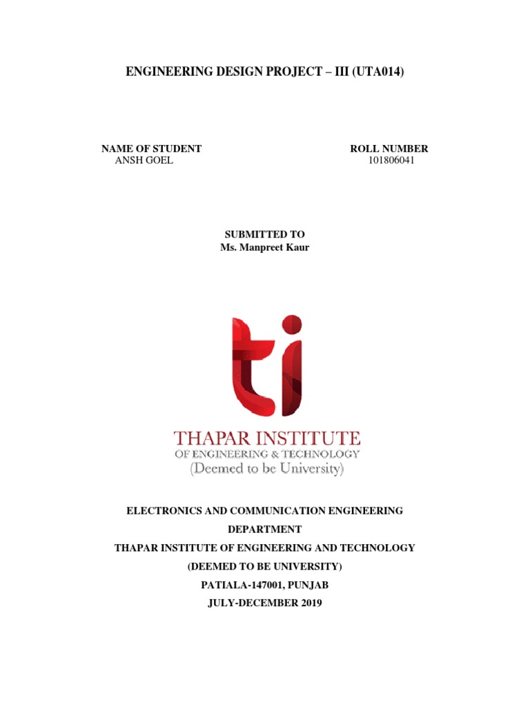 ENGINEERING DESIGN PROJECT – III (UTA014)