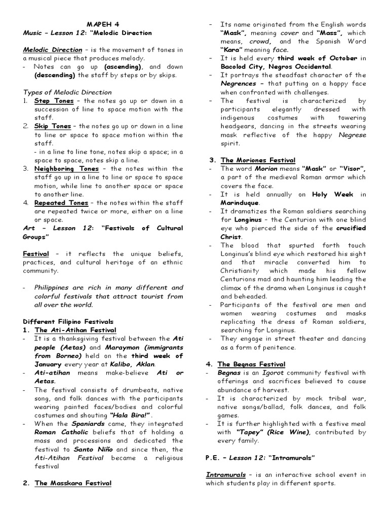 space to space, notes skip a line. 3. The Moriones Festival