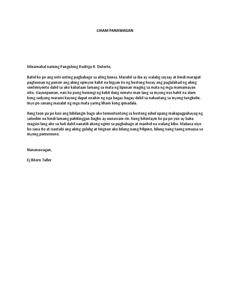 Inyo po sanang masalat ng mga mata yaring liham kong ipinadala.