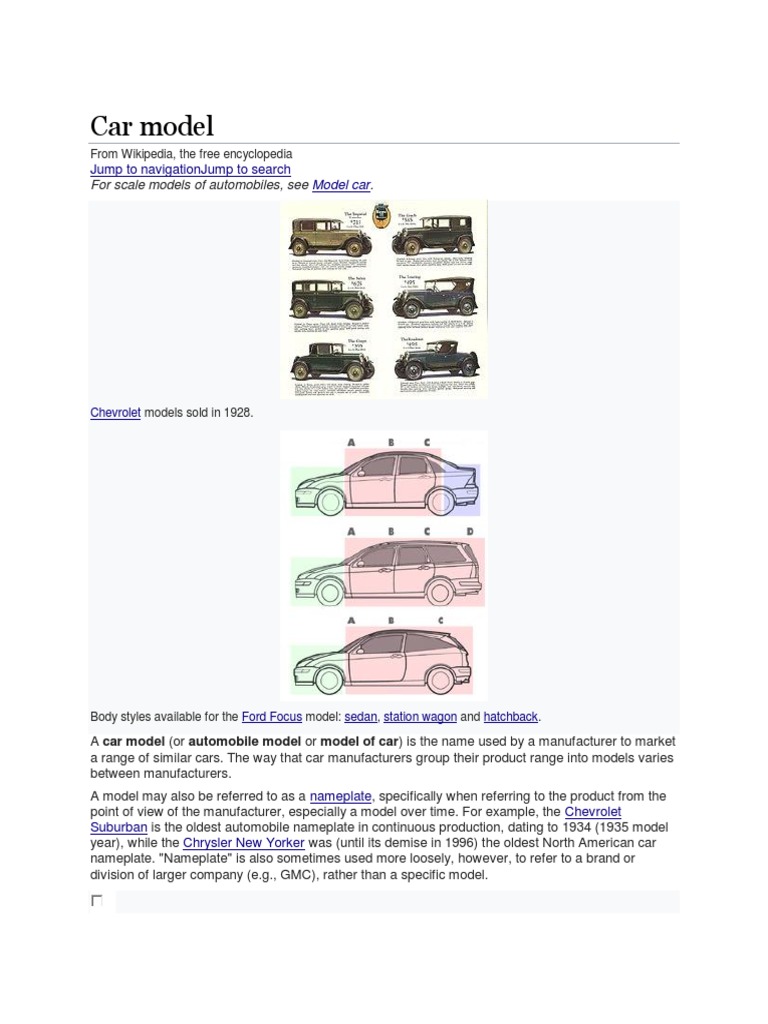 a range of similar cars. The way that car manufacturers group their product range into models varies