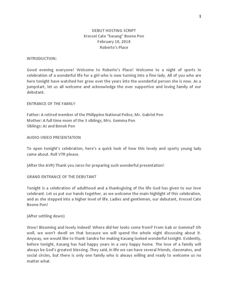 Tonight is a celebration of adulthood and a thanksgiving of the life God has given to our love