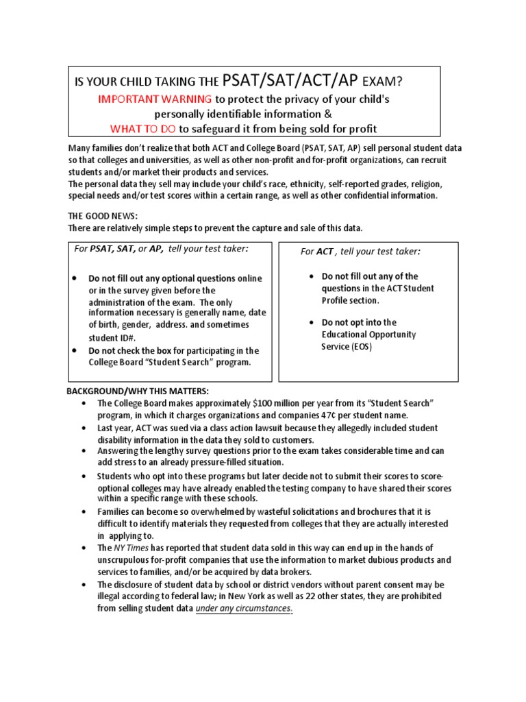 PSAT Privacy Flyer From Parent Coalition For Student Privacy